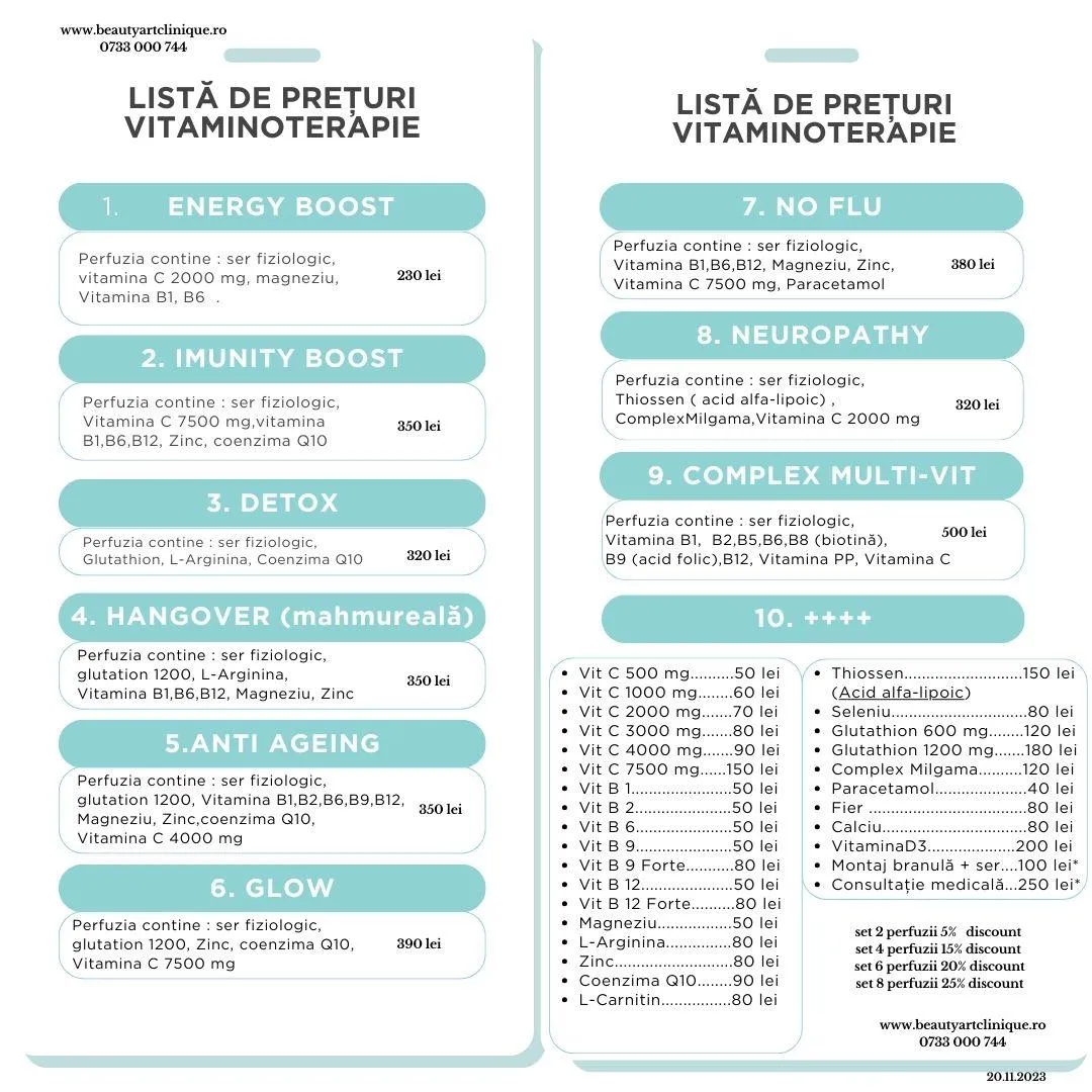 Trebuie menționat că perfuziile cu cocktail-ul de vitamine este personalizat, în funcție de nevoile fiecărui pacient. Pentru combaterea stresului oxidativ, cel mai des administrat este glutathione, un puternic antioxidant natural. Pe lângă detoxifierea organismului, acesta mai are și rolul de întărire a sistemului imunitar și de îmbunătățire a funcției cerebrale.